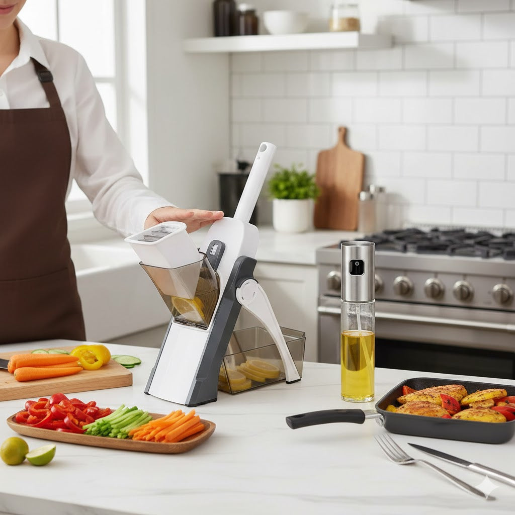 Smart kitchen tools change everything. Our mandoline slicer cuts vegetables in seconds, not minutes. Our food chopper handles onions, garlic, and herbs with a few quick pulls. No more tears, no more tedious knife work.